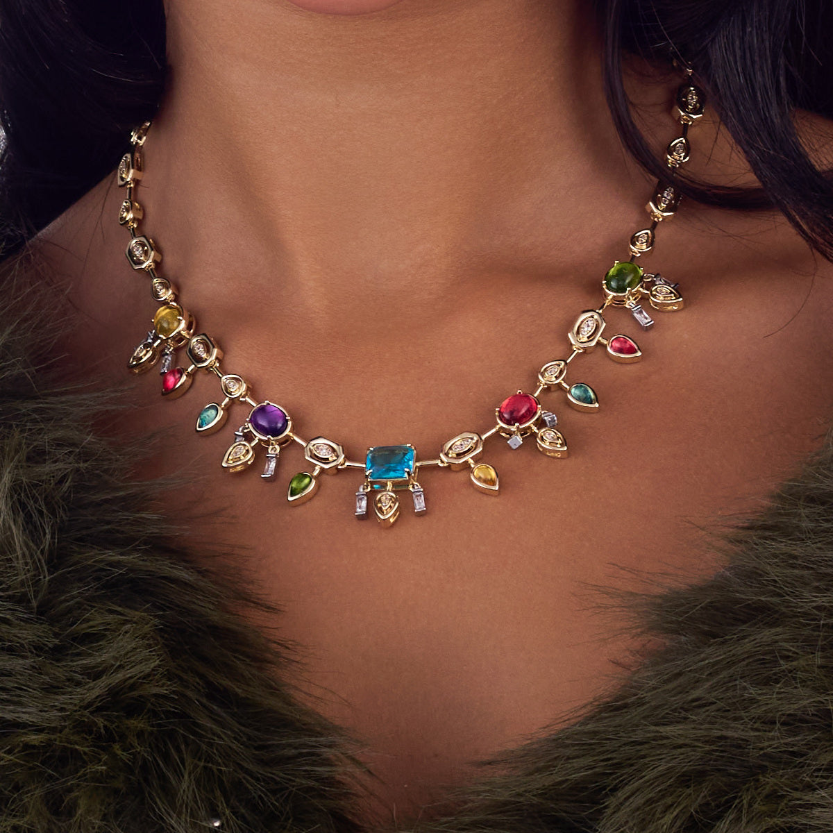 - A very unique colorful collier that has dangling stones